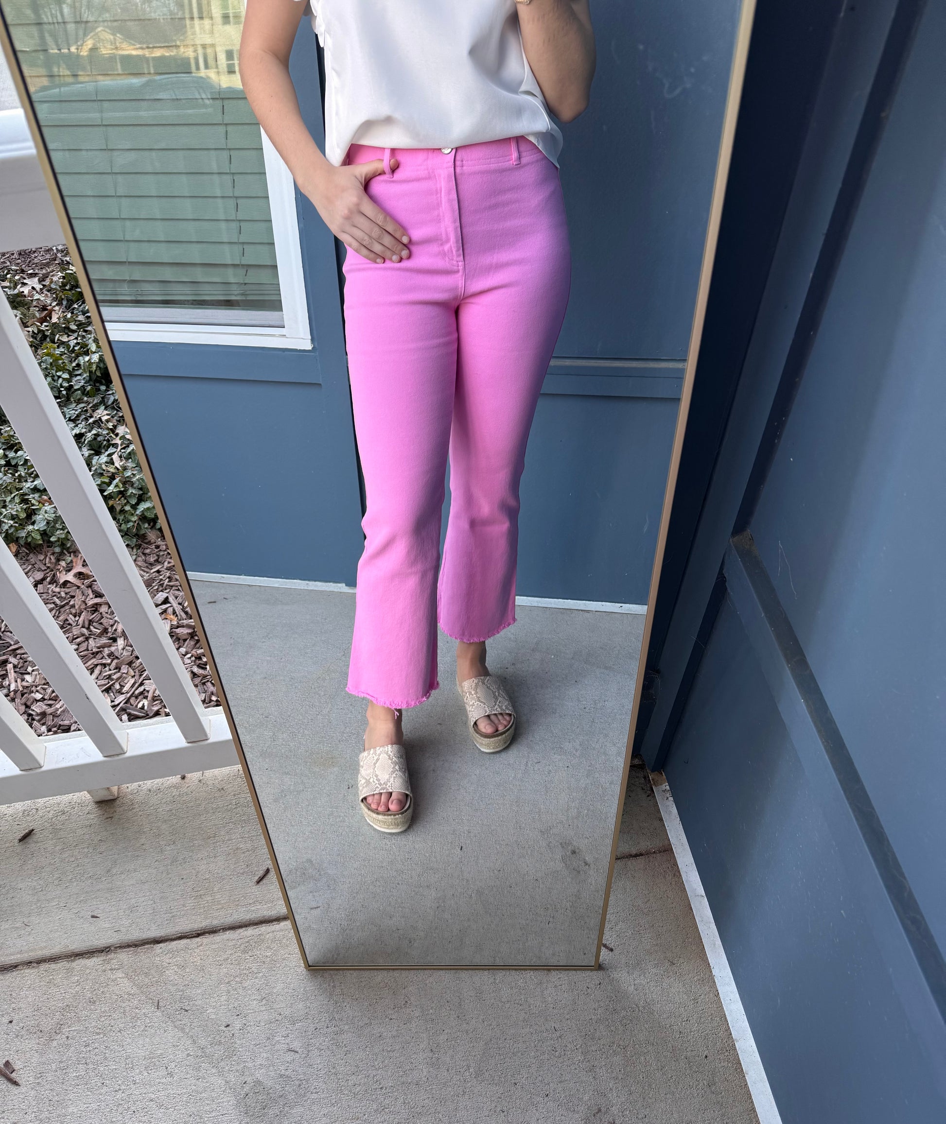 Model in pink pants is wearing a SMALL